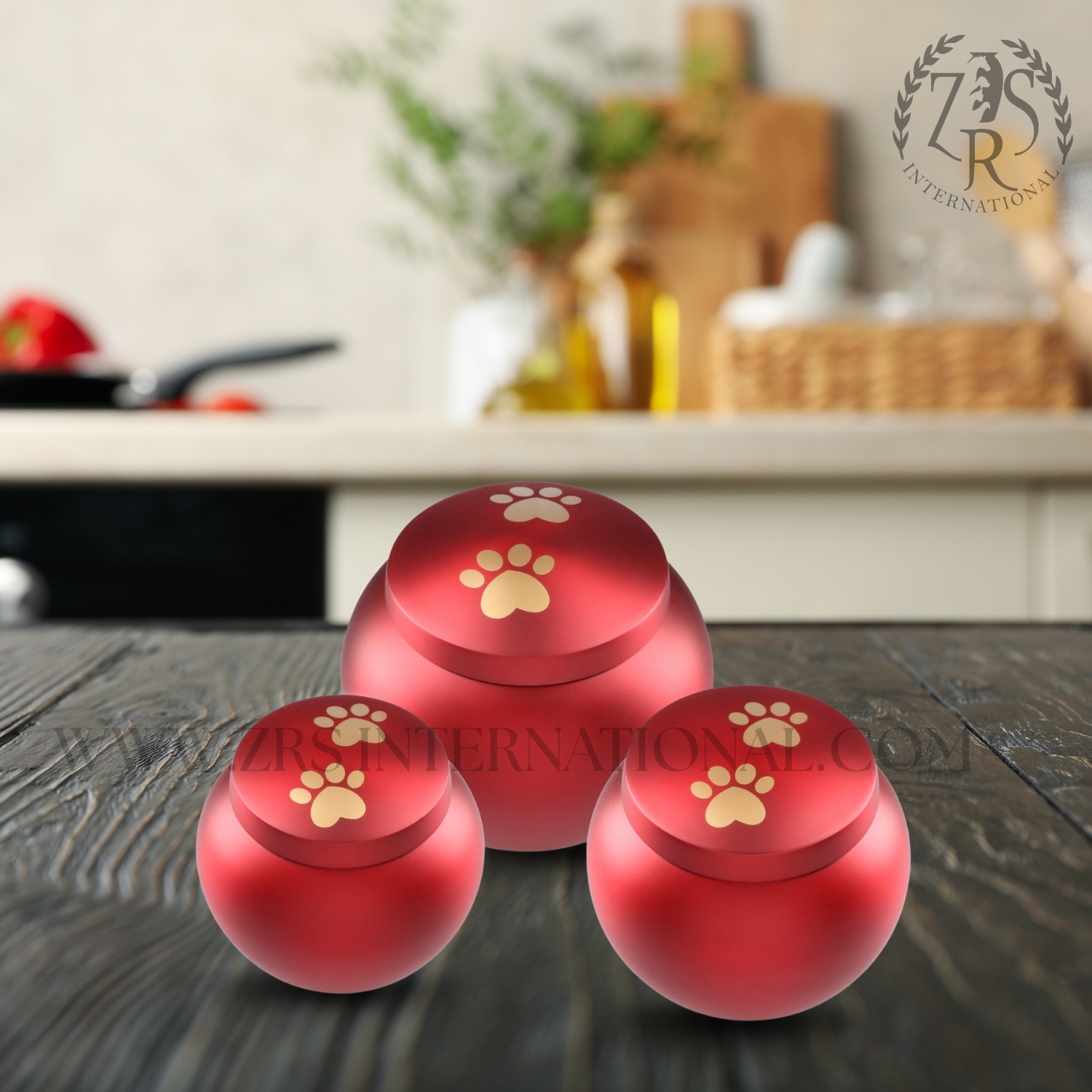 Set Of Three Elegant Pot Pet Urn for Dogs and Cats Ashes – A Loving Resting Place, Red, Aluminum, Solid, Pet Urn, Funeral Ashes Burial